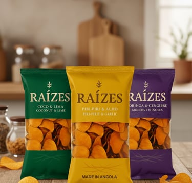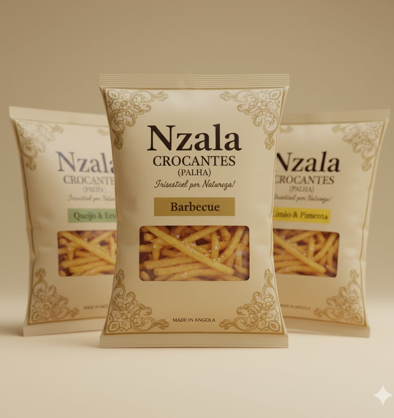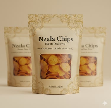 "Doce, Crocante e Inesquecível!" Descubra o equilíbrio perfeito entre tradição e sabor com as Nzala Chips, feitas a partir da melhor batata-doce angolana, selecionada com rigor para garantir uma experiência única a cada pedaço.