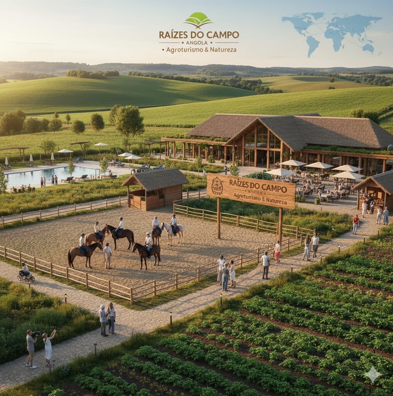 Programa de turismo sustentável integrado ao projeto Raízes do Campo, oferecendo experiências imersivas que conectam visitantes à realidade agrícola angolana, promovendo educação ambiental, valorização cultural e desenvolvimento comunitário. O agroturismo no projeto Raízes do Campo é uma extensão natural da nossa missão, criando uma ponte entre o urbano e o rural, e oferecendo experiências autênticas que celebram a cultura, a agricultura e a natureza de Angola.