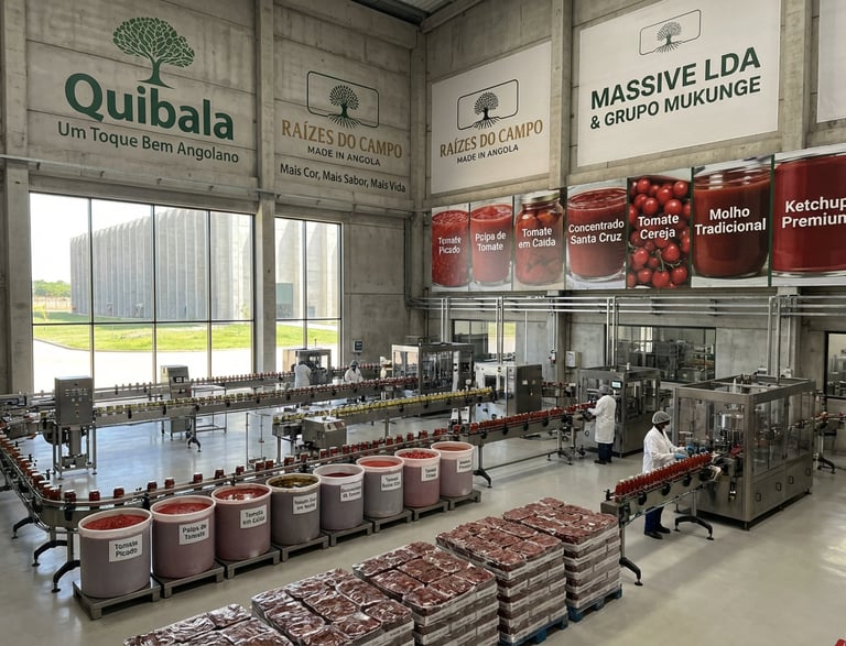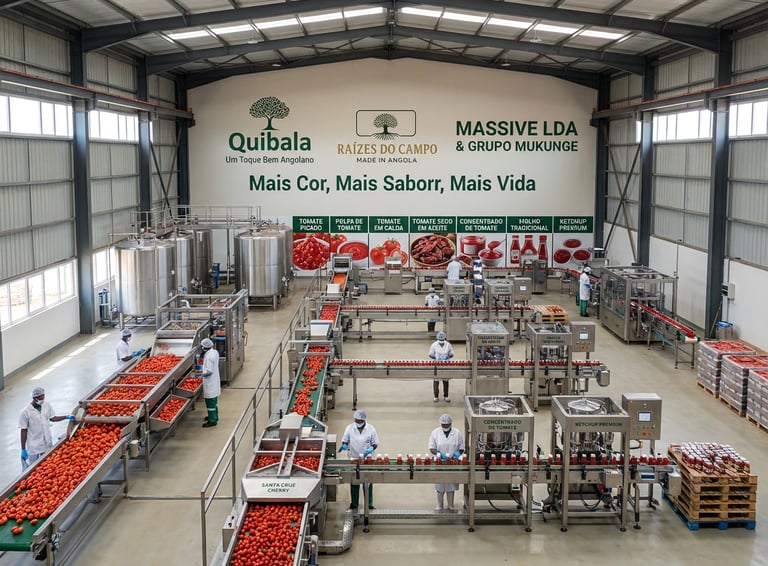 O projeto Tomate Quibala é a Terceira Fase da expansão agroindustrial da Raízes do Campo, solidificando o seu compromisso com a produção nacional de qualidade, este empreendimento é focado no processamento de tomate, trazendo ao mercado uma linha diversificada de produtos que celebra a riqueza do tomate angolano, unindo tradição e inovação para oferecer produtos que trazem mais cor, sabor e vida ao seu dia a dia.