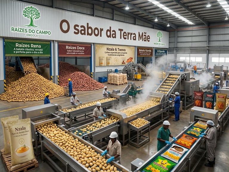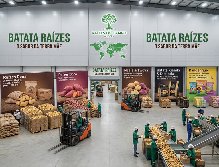 A linha Batata Raízes é a materialização do sonho da Raízes do Campo, um movimento de transformação social e desenvolvimento sustentável que nasce do solo fértil de Angola. Impulsionado pela paixão e respeito à terra, este projeto ambiciona ser uma referência nacional em produção, industrialização e exportação, criando 500 mil novos postos de trabalho e levando a batata angolana – símbolo de força, tradição e esperança – para as mesas do país e do mundo.